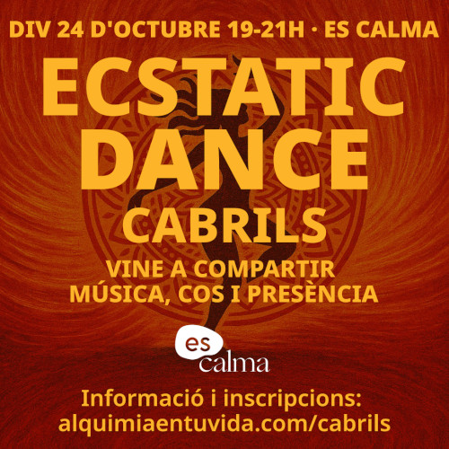 Ecstatic Dance · Cabrils Divendres 14 de Novembre de 19 a 21 a l’Espai es calma Inscripció Ecstatic Dance · Consciència en moviment Què és? Ecstatic Dance és una pràctica de consciència corporal i presència guiada per música. No és una festa ni una classe de ball. No hi ha passos ni coreografies; hi ha […]